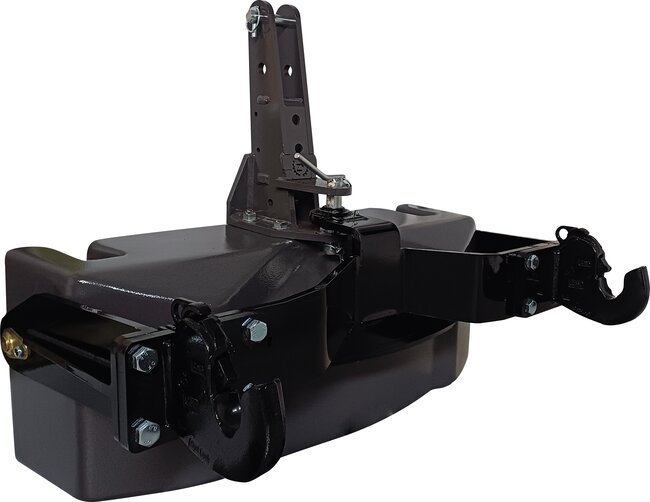 • Compatible à l'avant et à l'arrière grâce à son attelage à chape et à l'aspect compact, la masse monobloc donne la possibilité de porter jusqu’à 4 tonnes et de tracter des outils jusqu’à 12 T pour gagner un maximum d’adhérence.