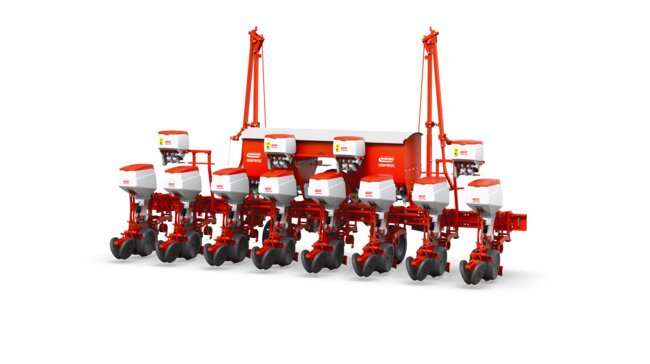 Trémies de semences en 60L. Roues de jauge indépendantes. Disponible avec microgranulateurs (trémies 30L) et fertilisation. Disponible en 6, 7, 8 et 9 rangs. Disponible en version entrainement électrique du doseur, coupure de rang par GPS et modulation de dose (ISOTRONIC)